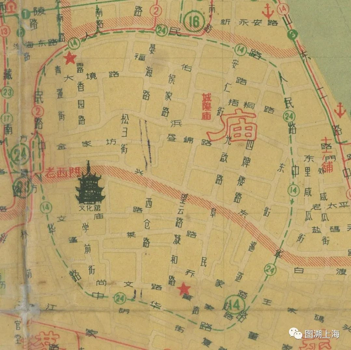 1956年地图中的环城公交由14路和24路电车分担