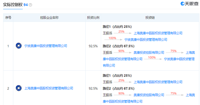 公开资料显示,王振滔直接持有康华生物13.7813%股权,其69.2271%持股的奥康集团持有康华生物16.0781%股权,因此,王振滔共持有康华生物24.91%的股权。同时,王振滔还通过直接和间接持股两种方式持有奥康国际40.06%股权。