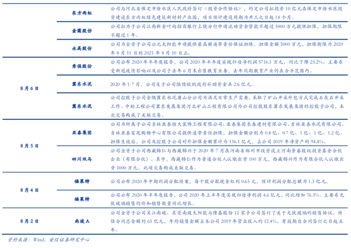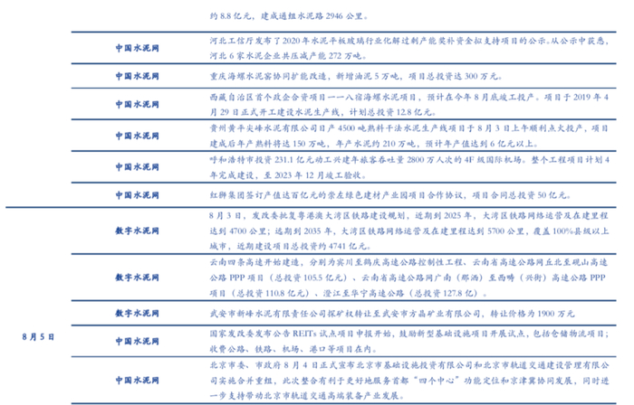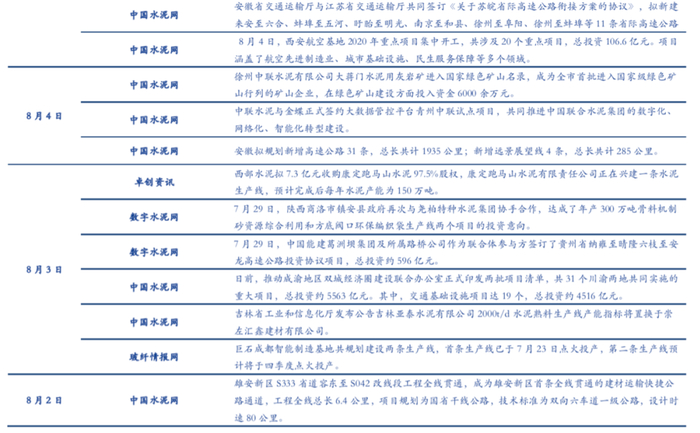 2. 水泥资产整合,提高行业集中度,建议关注行业龙头和业绩高弹性个股。根据公告,天山股份拟与中国建材开展资产整合,若顺利完成,【天山股份】有望从新疆区域龙头升级为全国性水泥龙头,市场影响力和话语权显著改善。继续重点推荐【天山股份】,同时推荐中报业绩高增长,旺季量价齐升的【祁连山】、【宁夏建材】。南方雨季大幅减弱,华东区域开启涨价行情,看好8月华东、华中区域水泥板块量价齐升行情。建议关注历史高分红、估值低的水泥龙头【海螺水泥】和受益于湖北区域振兴的【华新水泥】。同时,江西区域龙头【万年青】业绩弹性较大,也建议重点关注。华北区域价格基本平稳,水泥出货率显著好于去年同期,建议关注重组后经营数据明显改善、受益于华北基建地产稳定投资、雄安水泥需求亟待放量的【冀东水泥】。