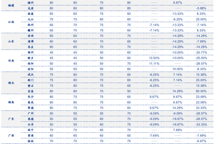 东北、华东、东南、西南需求上升明显。本周辽宁、江苏、浙江、江西抚州赣州、湖北、广东、贵州、云南等地库容比下降明显,河南新乡南阳、湖南长沙常德、海南、陕西、四川库容比上升明显,其他省市库容比变化较小。