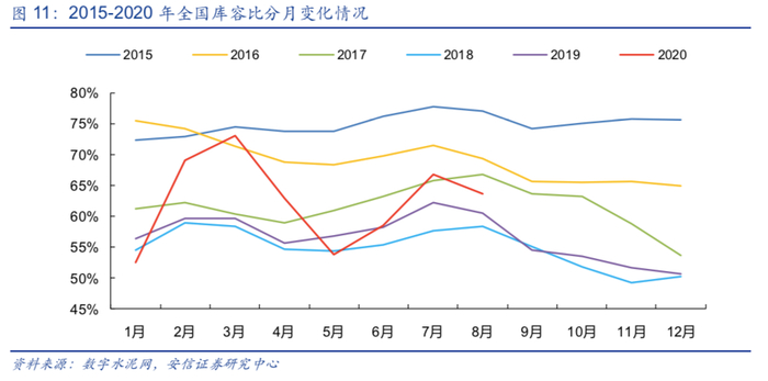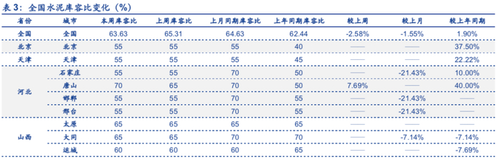 本周全国水泥库容比较上周下降1.69pct,较上月同期下降1.00pct,较去年同期上涨1.19pct。