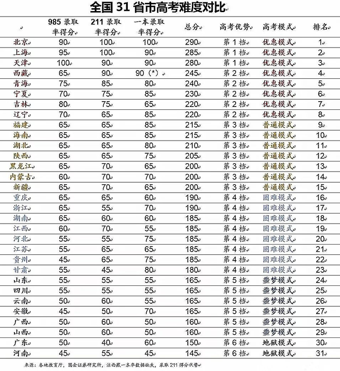 本文,以若干个客观指标的量化比对,来评价并排序中国各省的高考难度,看一看哪些省份高考是地狱模式,哪些省份高考是简单模式。