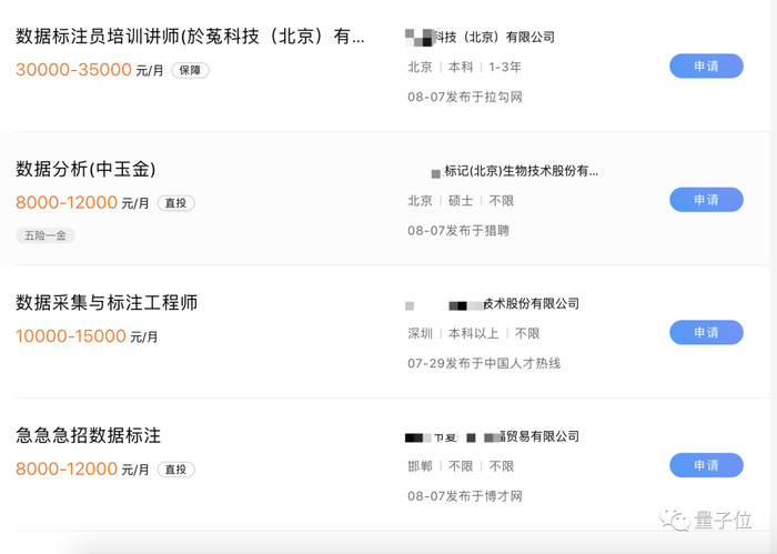 根据招聘平台信息,北京地区,数据标注师的月薪普遍在5000-8000,有数据采集技能的标注师月薪往往超过10000。而数据标注师的培训讲解岗,工资则超过2万。