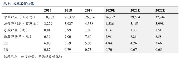 综上,远东宏信合理价值为391.10亿元,对应2020年预计8.62xPE,1.24xPB。