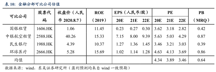 公司融资租赁业务具备龙头优势,产业业务稳健向上,预计2020~2022年每股收益分别为1.14元、1.30元、1.51元,每股净资产分别为7.96元、8.26元、8.58元,对应PE分别为4.84x、4.26x、3.66x,对应PB分别为0.70x、0.67x、0.65x。看好公司长期发展前景,首次覆盖,给予“买入”评级。