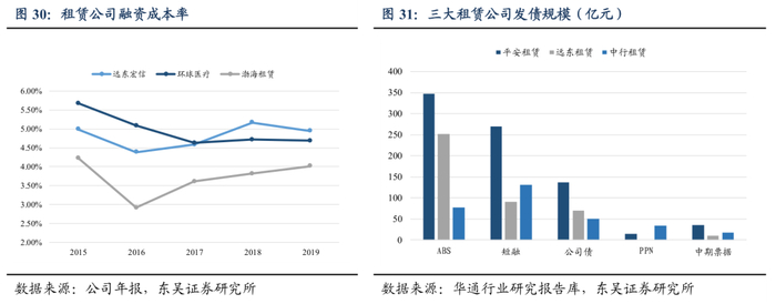 租赁行业市场集中度提高,行业龙头优势凸显。在外部实体经济承压、监管趋严的挤压和内部竞争日益加剧的推动下,我国租赁行业将加速内部的优胜劣汰,市场集中化趋势更加清晰。长远看,已经处于行业龙头的远东宏信、平安租赁等公司将利用自身资源和专业化的优势争夺更多更好的市场资源,进而提高行业整体竞争壁垒。