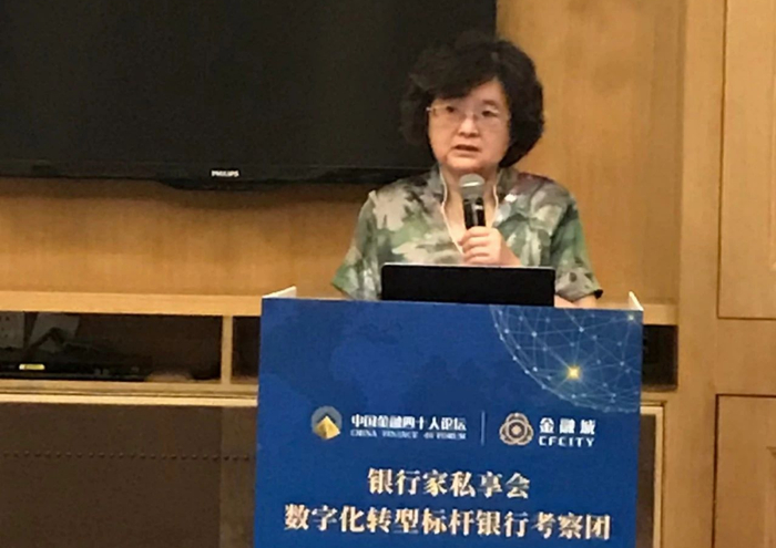 7月31日上午,考察团举行了开团仪式。张承惠在主题发言中深入剖析了商业银行数字化转型的实践和特点、机遇与挑战。她强调,“传统概念中,银行要做大才能做强,但在未来的科技时代,大不一定等于强,能够处理海量信息和使用数字技术才是竞争的核心。所以首先决策层要懂科学,要让科技人员进入决策层。”