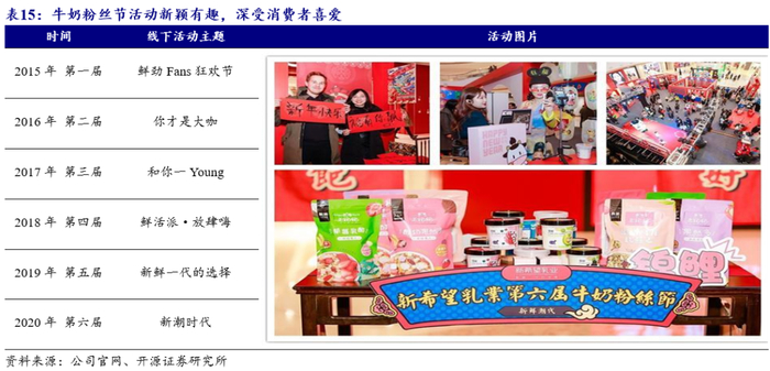 (3) 牛奶粉丝节:消费者可以通过参与线上线下的活动免费享受公司送出的福利,截至2019年粉丝节已连续举办六届。公司是首家举办大型粉丝节的乳品企业,粉丝节如今已成为了公司的年度品牌活动,是公司和消费者深度沟通的入口,有助于公司掌握最真实、最全面的消费需求,促进公司对产品的创新与研发。