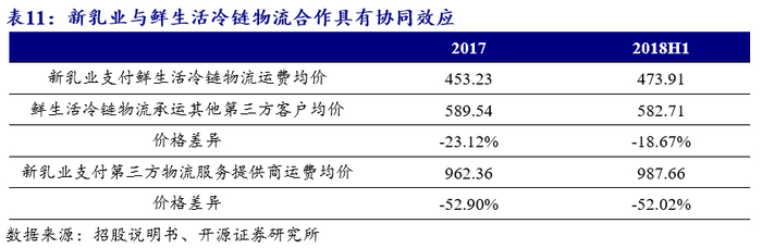 由集团子公司配送,协同效应明显。新乳业冷链运输主要由新希望集团下的鲜生活冷链物流有限公司负责,主要提供城市配送和一些干线运输业务,负责从成品仓至直营奶站、商超和部分连锁店的运输服务,而小型便利店、学校等渠道由于网点众多、单店销售量小,新乳业选择与各地第三方物流合作。鲜生活冷链物流公司拥有近3000台冷链配送车辆,千余条冷链运输线路,覆盖全国28个省市及自治区,而新乳业属于城市型乳企,需要的运输服务距离较短,单次集中运输量大,鲜生活冷链物流有限公司在向销售终端配送时效率更高,按单位运价计算价格低。新乳业的价格与鲜生活的第三方客户价格相差20%左右。通过协同资源,新乳业在物流运输方面具有明显优势。
