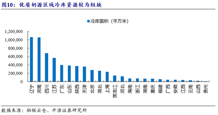 (2)运输限制:低温奶通常运输半径仅为100-150公里,需要全程控制在2-6℃冷链运输,配送频次较高,要求低温乳制品企业有较强的供应链管理能力。但目前我国冷链发展尚不完善,全国冷库分配不均匀,华南及华东等经济发达区域冷库资源较为丰富,而北方区域冷库资源较为短缺。
