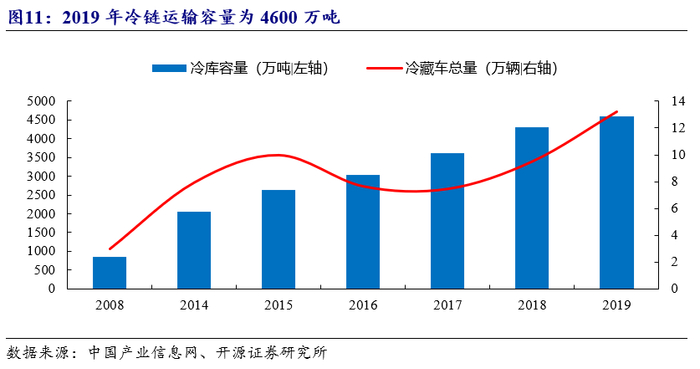 常温奶增速放缓,低温乳制品行业迎来发展机会。近年来随着常温奶行业体量增大,常温奶行业增速放缓。而低温乳制品行业逐渐迎来发展机会:(1)消费者更加注重健康,低温奶的营养价值显著高于常温奶,更符合消费者追求健康的需求;(2)冷链建设逐渐完善,我国冷藏车保有量从2008年3万辆增长至2019年的13.2万辆,冷库容量由2008年的850万吨增长至2019年的4600万吨。低温乳制品发展的限制因素仍存,但随着冷链运输系统不断完善、消费者对低温奶认知度提升,低温奶未来仍有较大发展空间。