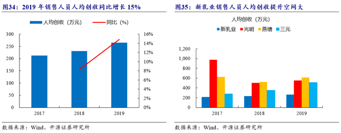 (2)经销模式:公司经销模式采取买断式销售,先款后货,可保障资金流动性。新乳业与经销商一年一签经销合同,并对经销商有严格的管控制度,严控经销产品及品种、经销区域及渠道、窜货、不可代理或经销其他厂家同类产品等。公司也采取多种返利政策,包括月度返利、季度返利、年度返利、销售收入增量返利等,提高经销商积极性。随着经销商管理制度不断完善,经销模式下的毛利率不断提高,由2015年的26%提升至2019年的29%。