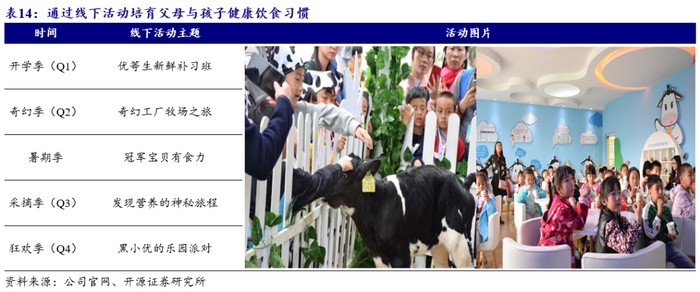 (2)食育乐园:为孩子们在牧场和牛奶工厂、社区、学校开展实景体验活动,通过娱乐的方式培育孩子们的健康意识,教会孩子们选择更营养的食物,养成健康的饮食习惯。线下定期开展的趣味主题活动系列包括“透明工厂游”、“发现营养的神秘旅程”、“黑小优的乐园PARTY”等,深受小朋友喜爱。