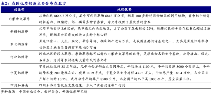 (1)奶源限制:低温奶采用的是巴氏杀菌技术,一般保质期短至5-15天,对原奶品质要求较高。故低温奶的奶源需要靠近加工地和消费地。但我国奶源分布不均匀,主要牧场分布在北方区域如内蒙古、黑龙江等,但低温奶主要消费区域在经济较为发达的南方区域。上游奶源资源分布不均匀限制低温奶发展。