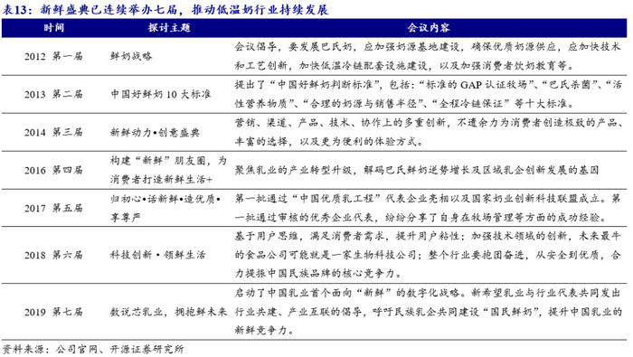 (1)“新鲜盛典”行业鲜奶论坛:把以鲜奶为主营业务的乳企聚集在一起,共同探讨行业发展前景,推动巴氏鲜奶成为引领中国乳制品的消费潮流,截至2019年已持续举办七届,每一届论坛均结合行业最新发展态势进行探讨,在低温奶行业具有一定影响力。