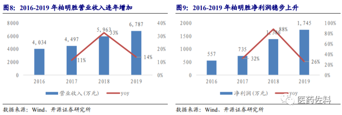 柏明胜成立于2010年3月,经营I类医疗耗材及医疗器械、II类医用化验和基础设备器具的设计开发、生产加工与销售,从事Ⅱ类医用化验和基础设备器具销售;Ⅱ、Ⅲ类注射穿刺器械,医用高分子材料及制品,医用卫生材料及敷料的销售。许可经营口罩与额温枪的生产经营。柏明胜自2016年来营业收入稳步增加,2019年实现营业收入6787.02万元;净利润自2014年转正,2018年同比增幅达到88.44%,2019年实现净利润1745.01万元。