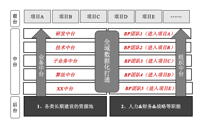 这类部门在以前的金字塔组织中也存在。事实上,把不同业务条线的通用部分抽取出来形成独立部门来与前线部门做接口,几乎任何一个大型企业都实践过此类思路。而这样的思路下搭建的“平台型组织”和金字塔组织并没有任何区别,依然存在前台与中台之间的“部门墙”等大企业病,前台并不能顺利调用中台的支持。