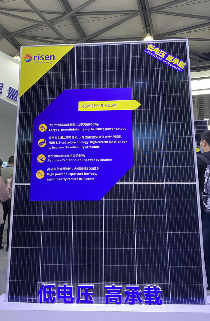 中环股份旗下公司环晟光伏在本次展会期间推出的G12系列叠瓦组件,采用210mm大尺寸硅片,组件转换效率超过21.1%,最高功率达635W。