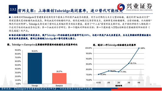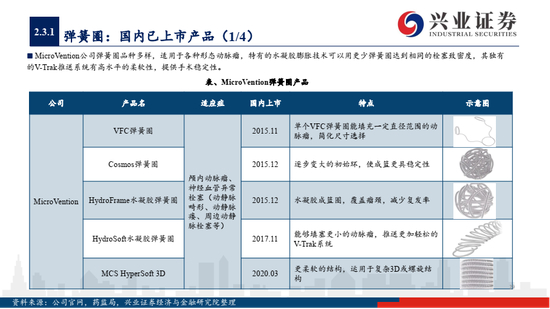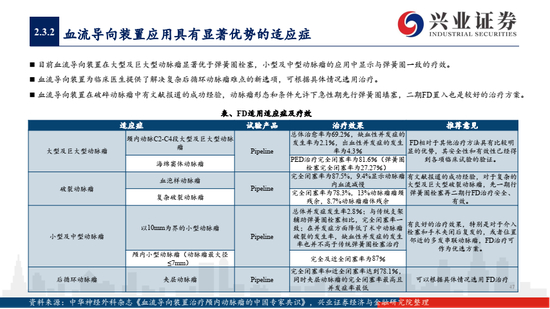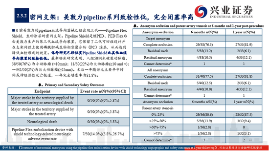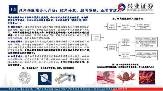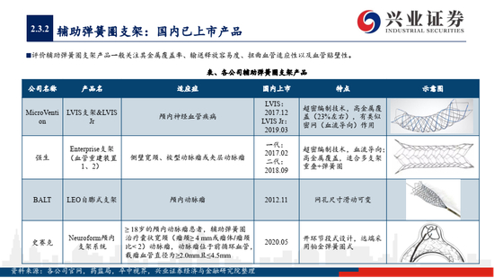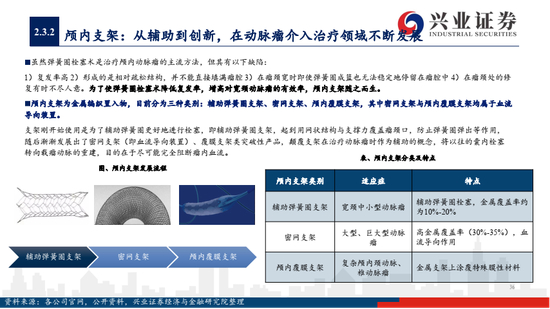 2)血流导向装置 (密网支架、覆膜支架)是治疗动脉瘤革命性产品,主流产品美敦力Pipeline已经研发至第三代,目前国产上市的只有微创的Tubridge,血流导向装置将囊内栓塞转向载瘤血管重建的治疗理念,在大型及巨大型动脉瘤等难治适应症上较弹簧圈栓塞具有显著优势;