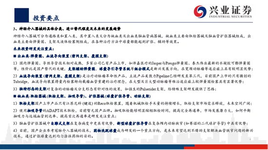 3、神经介入器械的具体分类、进口替代程度及未来的发展趋势是怎样的?