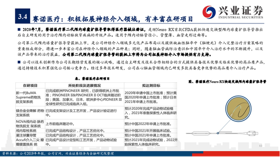 赛诺医疗:掌握神经介入治疗多项核心技术,Reuro RX是首个颅内快速交换球囊扩张导管,二代产品2020年7月新上市,依托丰富的产品管线和专利布局优势将保持良好的市场占有率