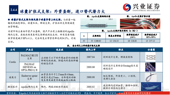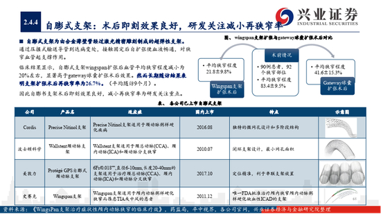 4)目前,国产企业参考冠脉介入器械的技术,药物洗脱球囊成为研发的一个重点方向,是未来有望达到不借助支架解决血管狭窄问题的新兴技术,通过扩张球囊达到均匀涂抹药物的目的。