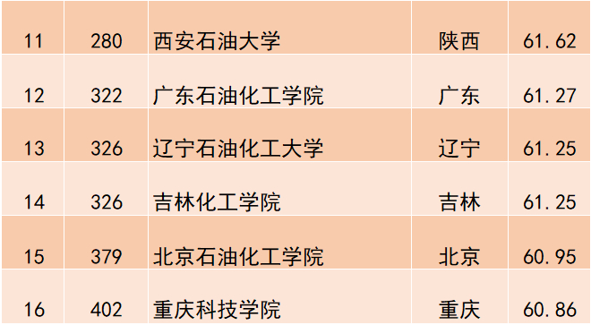 这一综合性榜单中,石油类高校评分相对均衡,全国百强入围5所,依次是中国地质大学(武汉)、燕山大学、中国石油大学(北京)、中国石油大学(华东)、成都理工大学。