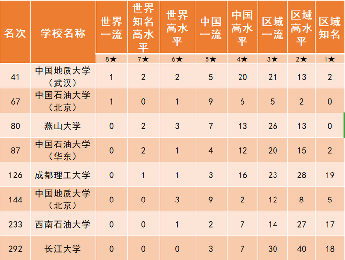 中国地质大学(武汉)、中国石油大学(北京)世界一流专业各有一项,综合排名前2强,紧随其后的是燕山大学。
