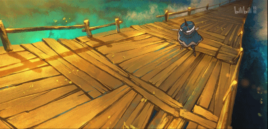在日常场景(静态场景)呈现上,《雾山五行》将水墨的意蕴美发挥得淋漓尽致。水墨之美,美在留白、写意与意蕴,瀑布飞流、云霞烟波、山石树木,既是自然的浑然灵动,亦是作者的心境独白。动画片中,大量的静态山水,采用泼墨手法,虚实结合、重意轻形。其色彩使用上又能跳脱出一般山水画的素雅,大胆浓烈又清新自然,美轮美奂,具有极强的视觉冲击力。