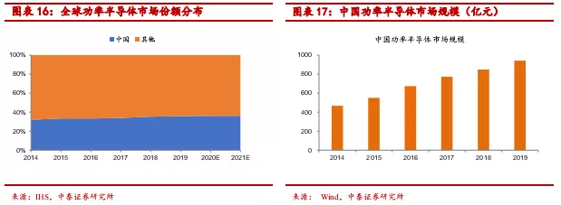 功率半导体:全球功率半导体的市场规模约400亿美元。功率半导体是为所有电子产品提供电子电力转换的核心器件。根据IHS统计,2019年全球功率半导体行业市场规模403亿美元。其中,中国功率半导体行业市场规模145亿美元,占比全球功率半导体市场35.9%,是全球最大的功率半导体市场。往前看,受卫生事件危机的冲击,整个功率半导体市场收入将在2020年下降9.1%。