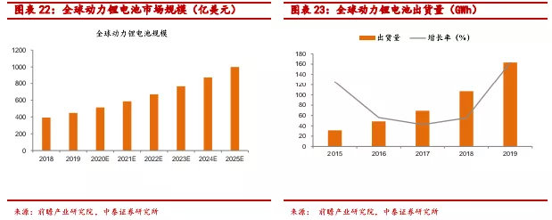 动力锂电池:全球动力锂电池市场规模450亿美元。根据Adroit Market Research的统计,2019年全球动力锂电池市场规模448亿美元。其中,中国动力电池市场规模为710亿元,同比下降11.8%。往前看,预计到2025年,全球锂离子电池市场规模估计将超过1000亿美元。