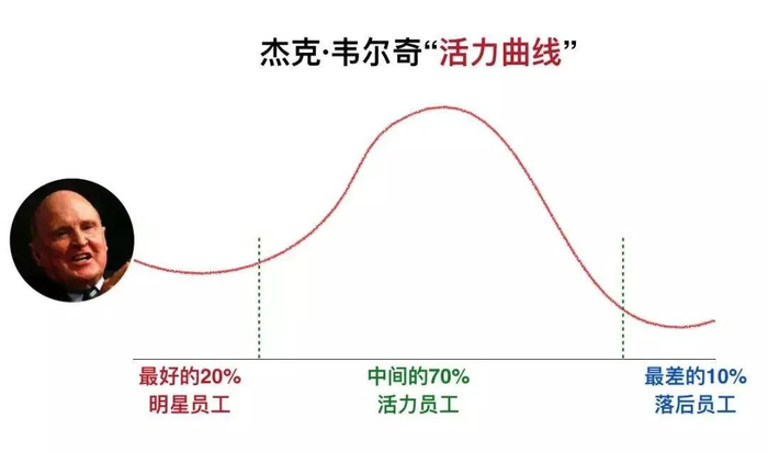 通用电气传奇CEO杰克韦尔奇说,对末尾10%的员工进行换岗或者淘汰,是通用电气保持永久活力的秘密武器,他把这条规则称之为“活力曲线”。