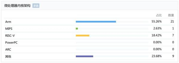 按照位数来划分,MCU可分为4位、8位、16位、32位和64位微处理器,现在32位MCU已经成为主流,正在逐渐替代过去由8/16位MCU主导的应用和市场。若按照指令集架构(ISA)来划分,MCU类型包括8051、Arm、MIPS、RISC-V、POWER等微处理器。基于Arm Cortex-M系列内核IP的MCU已经成为32位MCU的市场主流,最近几年开源的RISC-V微处理器也开始流行起来,特别是在新兴的物联网领域。