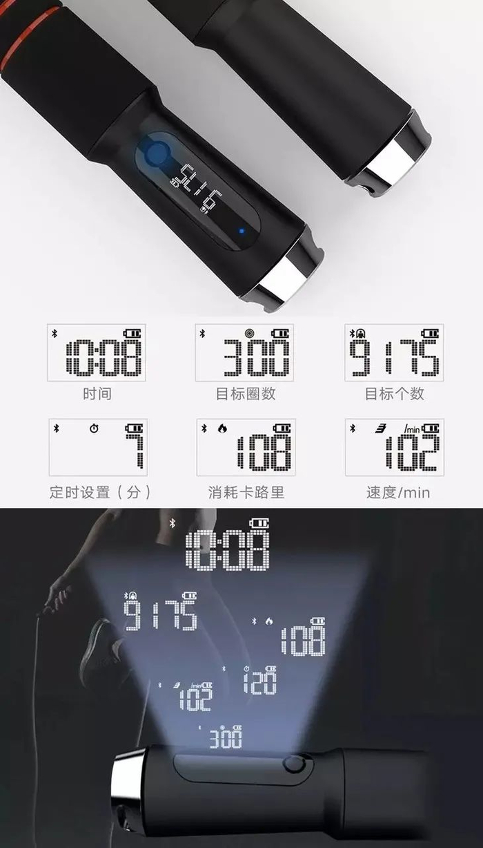 运用了低功耗蓝牙芯片技术,可以实时把跳绳数据传输出来,显示在手机APP界面上,更加精准、方便。
