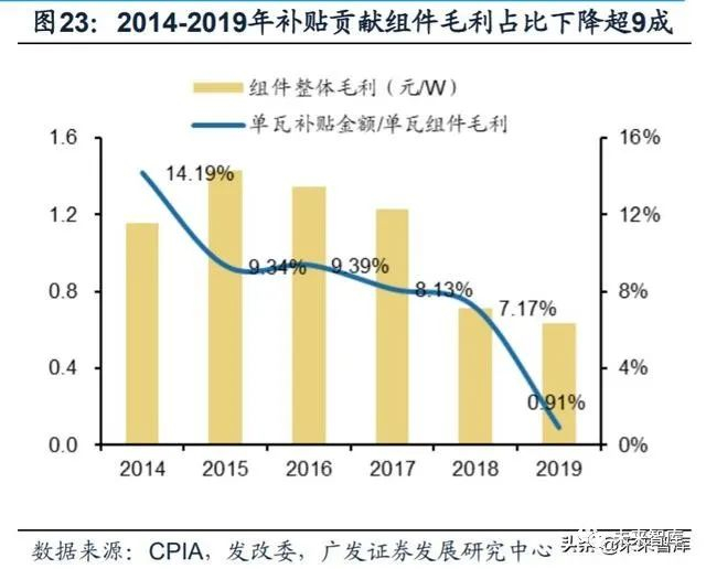 2.政策补贴对光伏组件价格及盈利的贡献占比下降超9成