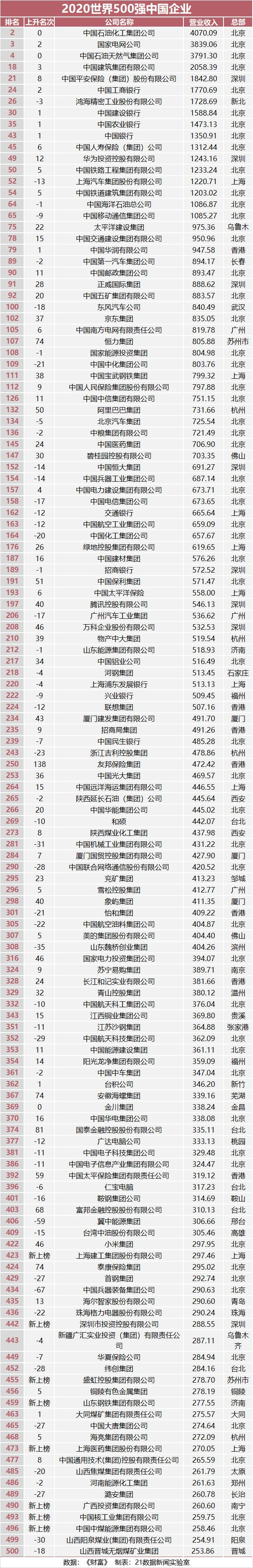 附:世界500强排行榜中国企业名单