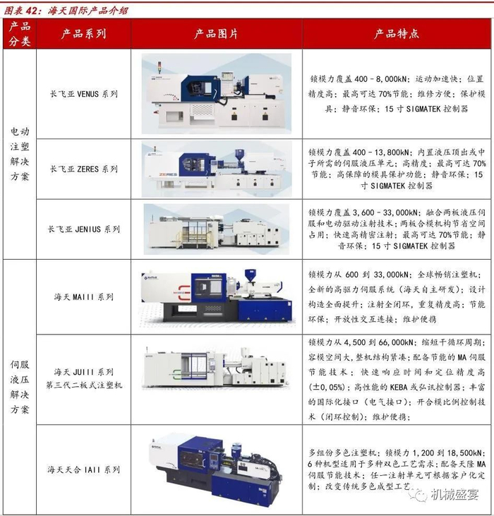 2)伺服液压解决方案:包括海天MAIII系列、海天JUIII系列、第三代二板式注塑机海天天合IAII系列。