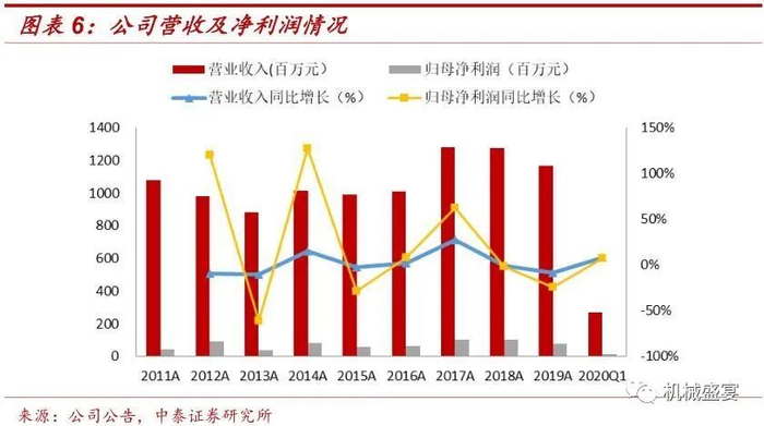 ②经营状况:历史表现稳健,有望迎来业绩拐点。2019年,受机床工具行业下行拖累,公司实现营收11.65亿元,同比下滑8.64%,但降幅远小于行业整体水平;2011-2019年,国内金属切削机床行业主营业务收入CAGR为-4.07%,同期公司营收CAGR为0.96%,表现出较强的韧性。公司厚积薄发,有望迎来业绩快速成长的拐点。