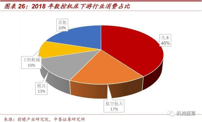 3)下游:终端客户。终端用户主要是航天航空、船舶、汽车、工程机械等领域的公司。机床行业的下游产品更新换代较快,每年新增产能较大,从而引致相应的机床产品需求。