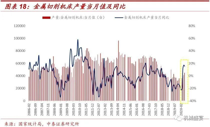①装备制造业“母机”,战略地位显著。机床行业是关系国家经济的战略性产业,处于制造业价值链和产业链的核心环节。目前国内机床产业正朝向高质量发展模式转变。景气度方面,金属切削机床产量3-6月分别同比增长-21.70%/11.40%/17.10%/15.40%,4月以来持续正增长,景气度持续回升。