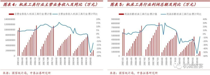 2018-2019年机床工具的主要下游应用领域汽车行业持续低迷,疫情后,呈现复苏迹象。2018年,我国数控机床主要下游领域消费占比中,汽车行业占比最大约为40%,因此汽车行业发展直接影响了机床行业发展情况。根据中汽协发布的数据,2018-2019年,国内汽车产销量分别同比-3.80%/-8.00%、-2.76%/-8.20%,即自2018年以来,国内汽车产销量持续下滑。进入2020年,1-3月份受疫情影响,国内汽车产业经历了自2010年登顶世界产销第一市场以来的最差开局,根据中汽协公布的数据,1-3月,国内汽车产销347.4万辆和367.2万辆,同比下降45.2%和42.4%。但4月份随着国内疫情缓解,行业内企业有序复工复产进度加快,汽车市场正迎来复苏,4-6月份,国内汽车产销量分别同比5.10%/19.00%/20.40%、4.41%/14.48%/11.62%,复苏迹象明显,机床工具行业有望受益。