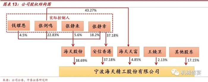 股权结构方面,公司的母公司为宁波海天股份有限公司,实际控制人为张静章、张剑鸣、钱耀恩、张静来,其中公司董事长张静章和董事张剑鸣系父子关系。值得注意的是,张静章先生的长孙,张剑鸣先生的儿子张斌先生已于2018年进入公司董事会任董事。我们认为,随着第三代接班人进入公司董事会,公司专注于打磨机床产品的工匠精神将得以延续,同时为公司带来更大的活力,有望逐步进入业绩释放期。