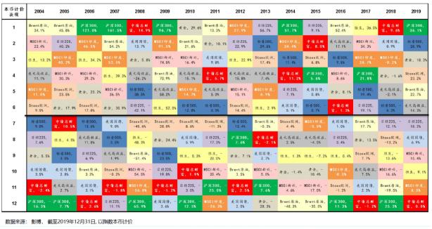 上图反映的是在不同的时间维度(横轴)、不同资产的收益率表现(纵轴)是轮动的,并且近年来这种轮动有加速的趋势。根据美林投资时钟理论,大类资产在不同经济周期下表现各异。一般而言,一轮完整的资产轮动需要经历5年以上的时间,想要准确地把握每轮周期的拐点、捕捉到各类资产的最优表现难度非常大;一旦判断错误,就可能追涨杀跌或是踏空。更何况,投资还要受到诸多因素的干扰,如信息不对称、市场非充分有效、投资者的人性弱点(过度自信、损失厌恶、禀赋效应和处置效应)等,这些都在影响着投资的结果。