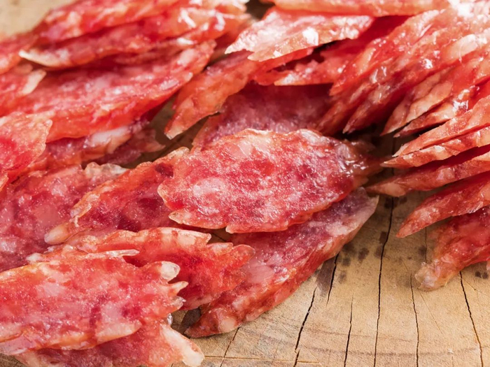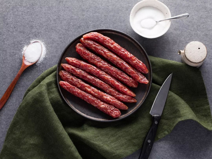 人造肠衣没有弹性,因此这种腊肠一般不会处理得太干。