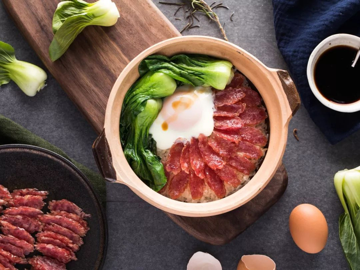 广式腊肠应用到烹饪中,最广为人知的就是煲仔饭了。