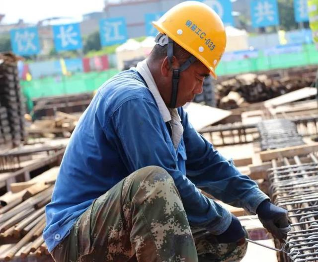 每天清晨5点半开始,一线工人们在脚手架上爬高走低,汗流浃背。露天工地毫无遮挡,工人们被晒得黝黑,头发、工作服早已被汗水浸湿。