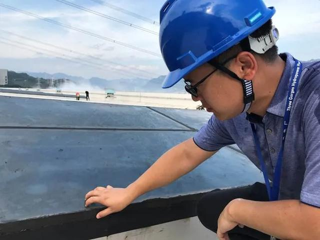 ▲ 三峡电厂水工分部员工正在进行屋面防水处理效果检查。摄影:于强