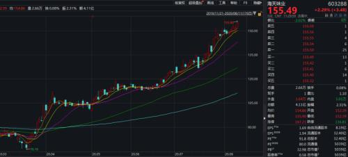 此外,食品饮料、白酒等消费品种表现也较为突出。今日上午,三全食品、盐津铺子、中炬高新、双汇发展、海天味业等个股批量创出历史新高。值得注意的是,海天味业今日上午上涨2.29%,总市值突破5000亿元,年内累计涨幅达75.32%。
