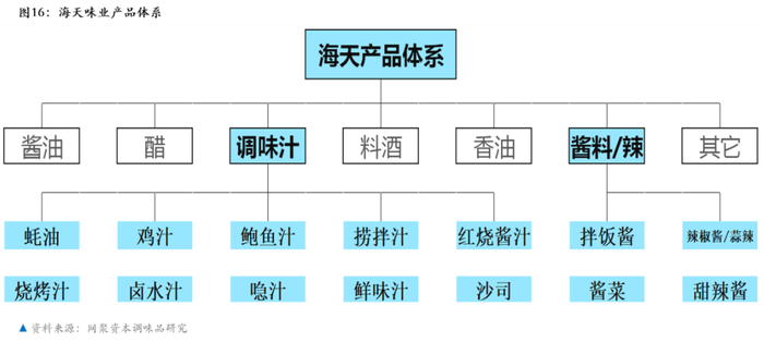 国内上市公司海天味业,其战略非常清晰,即长期坚持总成本领先的战略。除了进一步巩固酱油品类的领先地位,现在也开始进行跨品类布局,在调味汁、调味酱领域布局。这两个品类范围内的品种,多数都属于复合调味品。