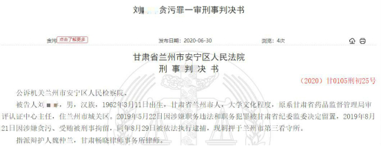 甘肃药监局一主任贪污受贿获刑 行贿者涉及佛慈制药